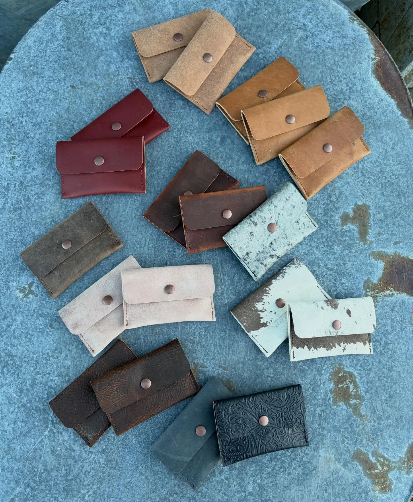No two hides are ever alike, leather is as unique as you are. Hides may sometimes tell a story about its beautiful past through scratches or scars, and sometimes I even come across hides with old brands. The added rustic charm these marks give, only adds to your unique handmade item.